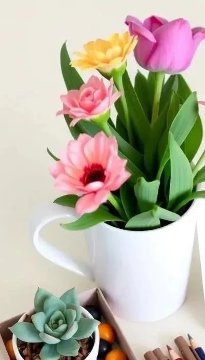 Символы праздника: цветы, улыбки, детские рисунки и искренняя благодарность.