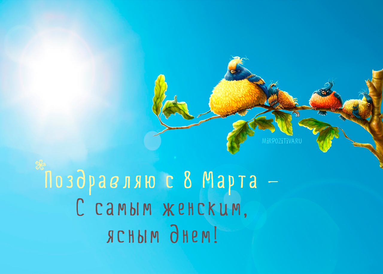 С 8 Марта поздравляю Всем весны в душе желаю. Пусть прогонят прочь метели Радость, смех и птичьи трели.