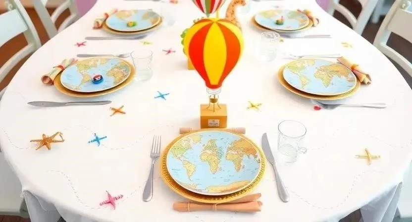 Особое внимание уделите фотозоне. Создайте тематический фон с изображением земного шара или карты мира. Реквизит – шляпы путешественника, компасы, бинокли, чемоданы – поможет гостям почувствовать себя настоящими исследователями. Оформление стола должно быть таким же тематическим. Используйте посуду с изображением самолетов или кораблей, тематические салфетки и скатерть. Украшения в виде маленьких глобусов или сувениров из разных стран добавят изюминку. Однажды я сделала маленькие «паспорта» для каждого гостя, в которые они могли «ставить штампы» за участие в конкурсах, посвященных разным странам.