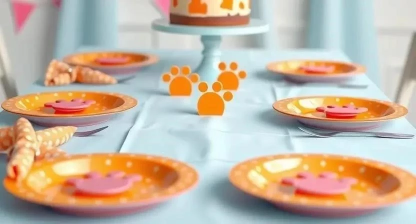 Оформление стола также должно быть тематическим. Используйте скатерть с изображением героев мультфильма, тематическую посуду, салфетки и украшения для торта. Не забудьте про яркие и красочные элементы декора, которые создадут праздничное настроение.