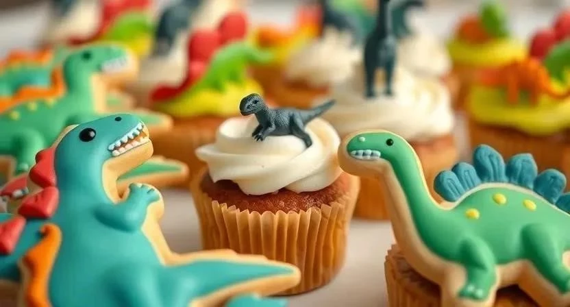 2. Капкейки: Украсьте капкейки кремом в виде динозавров или следов динозавров.
