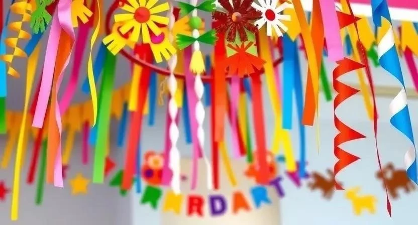 - Тематические декорации (например, деревья из бумаги для осеннего праздника или снежинки для новогоднего).