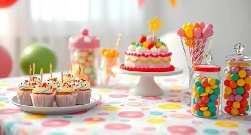 Ответ: Используйте яркую скатерть, красивую посуду и украшения для стола.