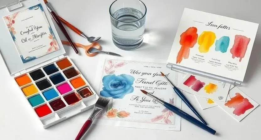 - Приглашение с использованием акварельных красок: Нарисуйте акварельный фон на лицевой стороне приглашения. Напишите текст приглашения.