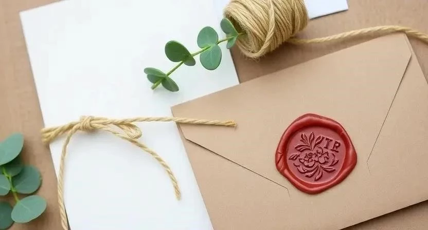 - Приглашение с использованием крафт-бумаги и бечевки: Вырежьте из крафт-бумаги прямоугольник, сложите его пополам. Украсьте бечевкой, обвязав ее вокруг приглашения. Напишите текст приглашения красивым почерком или распечатайте его на принтере.