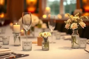 Используйте красивую посуду, текстиль и украшения. Расположите приборы и бокалы в соответствии с правилами этикета.
