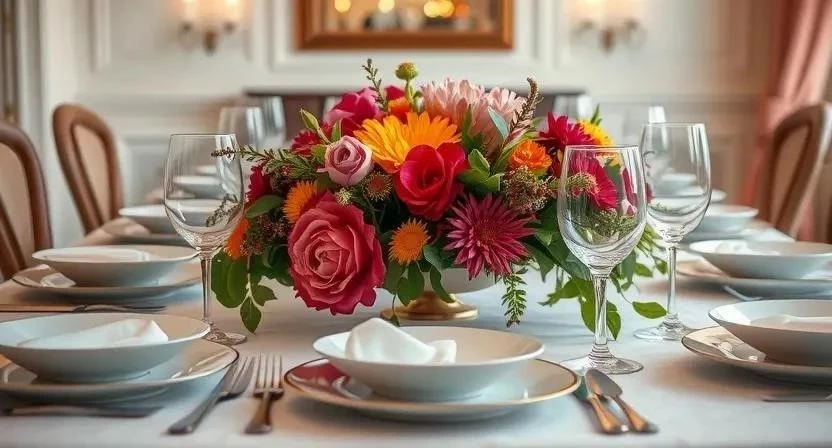 | Семейный | Фарфоровая или керамическая | Льняная или хлопковая скатерть | Цветы в вазе, свечи | Средний |