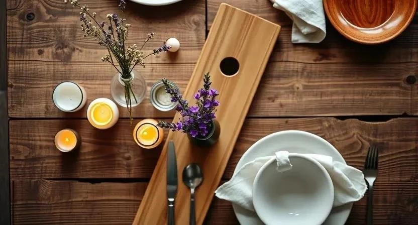 | Скандинавский | Белый, серый, натуральное дерево | Деревянные подставки, минималистичная посуда, свечи | 1500 |