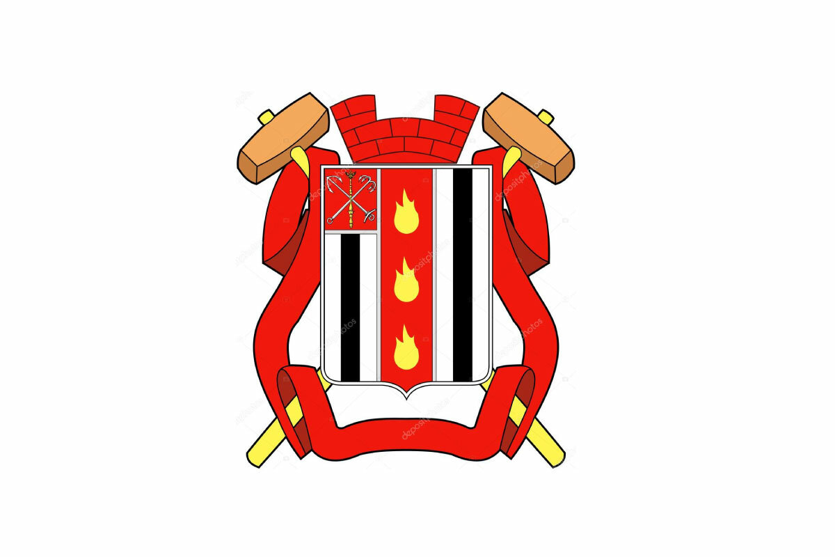 Три золотых пламени — заводская промышленность (представляется, что это три горячих производства: получение и горячая обработка металла и обжиг кирпича).