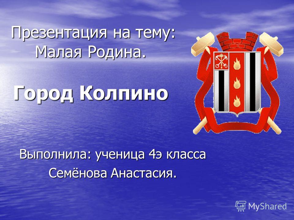Презентация 4 класса на тему: «Презентация на тему: Малая Родина. Город Колпино Презентация на тему: Малая Родина. Город Колпино Выполнила: ученица 4э класса Семёнова Анастасия.». Скачать бесплатно и без регистрации. — Транскрипт: