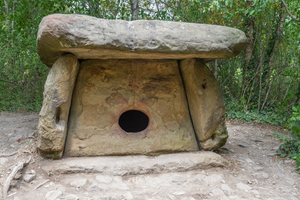 Еще мы посмотрели Пшадские дольмены, расположенные на территории фермерского хозяйства «Дольмен». Здесь находится четыре дольмена. Кроме того, на территории есть кафе, где готовят очень вкусный плов. Родник «Наташа» мы проехали без остановки, только похлопав глазами. Впрочем, здесь было много народу.