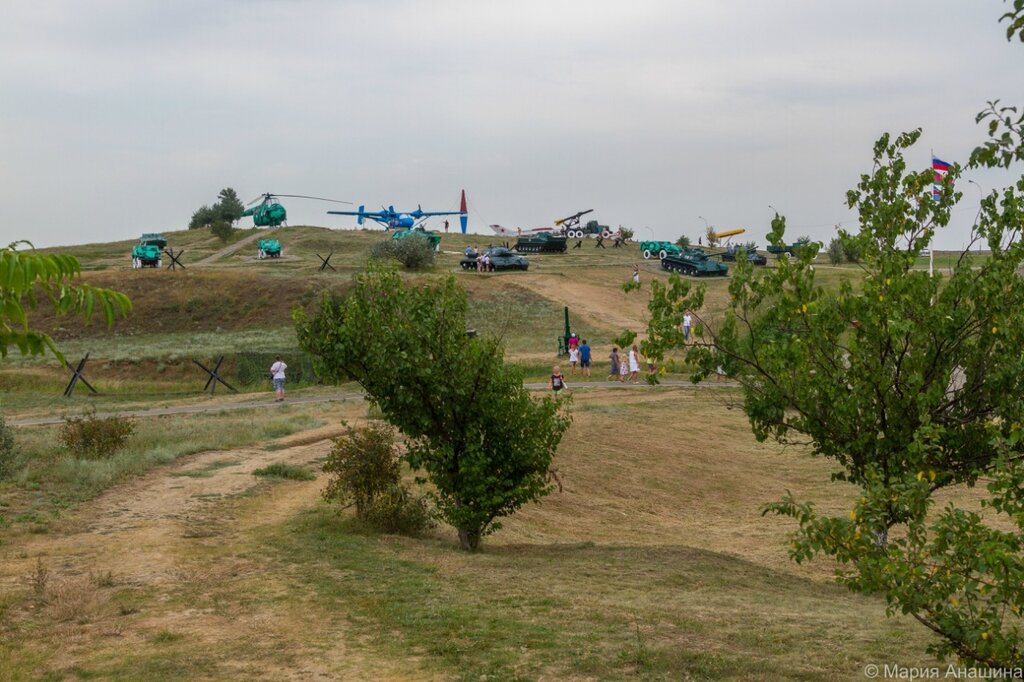 Съездили мы и на побережье Азовского моря, в Темрюк. Ужа сама поездка была очень красивая — с гор мы спустились на равнины, полюбовались пейзажами Кубани. Там же купили арбузы и дыни. А в Темрюке нашей целью была «Военная горка» — музей военной техники на склонах грязевого вулкана Миска.