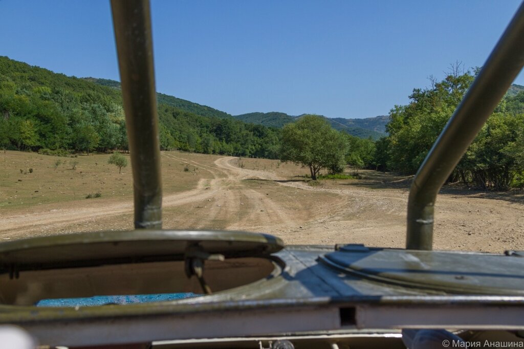 Пожалуй, это была самая захватывающая поездка. Сначала на комфортабельном микроавтобусе, который забрал нас около гостиницы, а потом пересели на открытый БТР, который проехал по таким местам, где никто больше не пройдет, только на своих двоих или верхом на лошади.