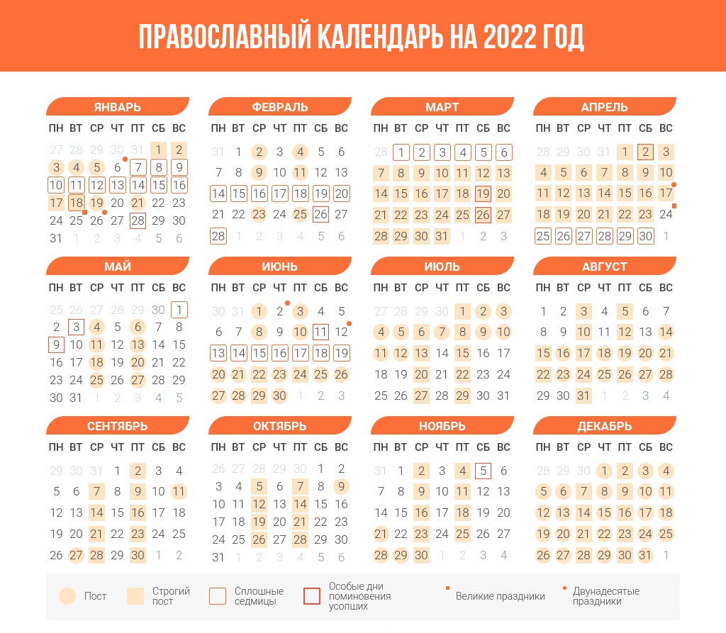 Календарь православных постов 2022