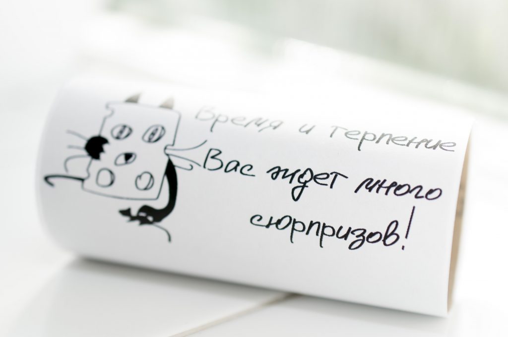 Проявить оригинальность можно, поместив записки с предсказаниями и пожеланиями в: