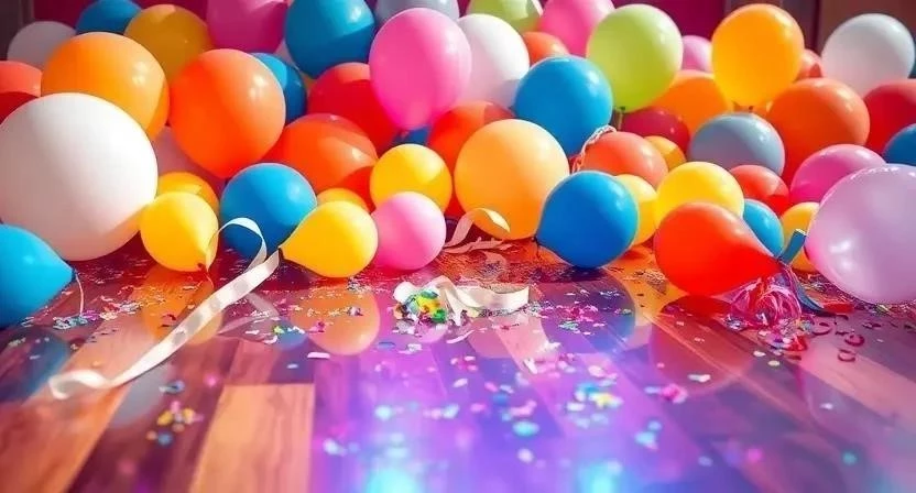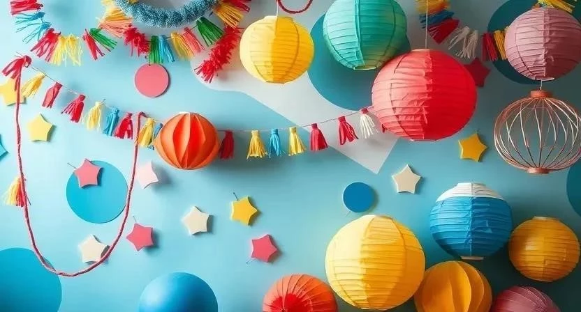 Ответ: Используйте яркие шары, гирлянды, плакаты, диско-шар, цветные лампы.