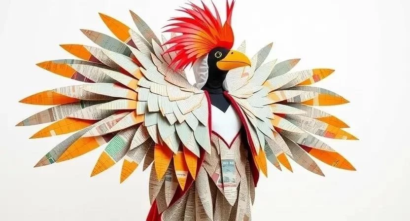 15. Костюм из старых журналов: Скрутите страницы журналов в трубочки и создайте из них необычный наряд.