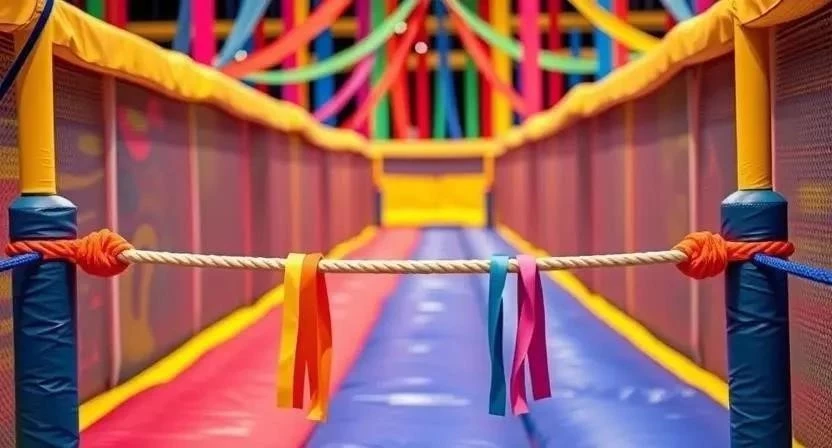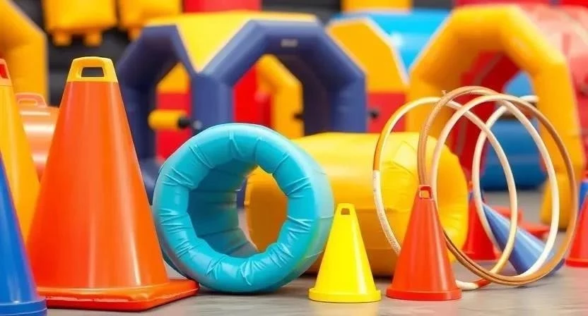Ответ: Вы можете использовать любые препятствия, которые безопасны и интересны для участников. Например, веревочные паутины, туннели, обручи, конусы, мягкие подушки, ленты и т.д.