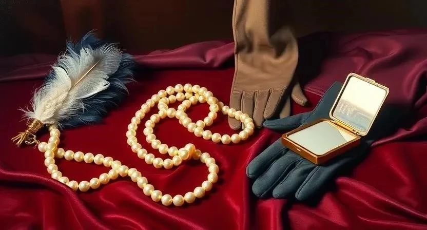 - Женщины: Платья с бахромой, блестками, перьями, туфли на каблуке, длинные перчатки, повязки на голову с перьями, жемчужные ожерелья.