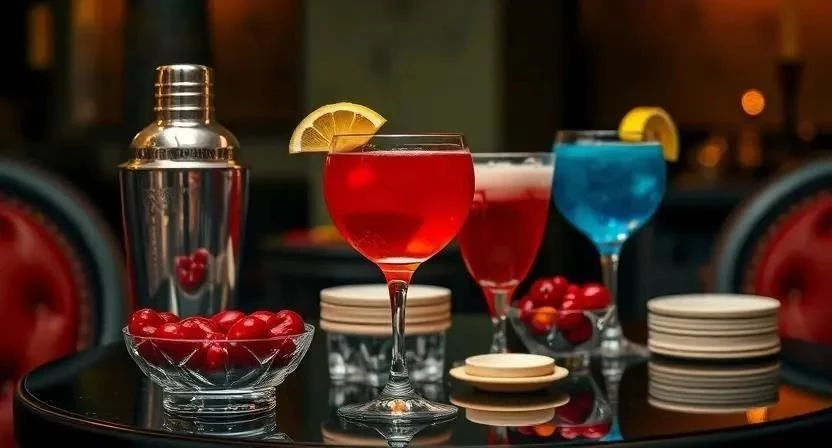 - Напитки: Коктейли (Манхэттен, Олд Фэшн, Мартини), шампанское, вино, виски.