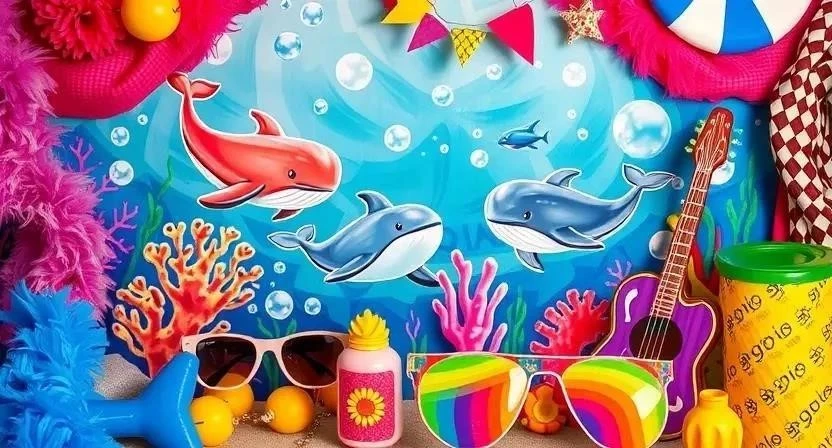 Ответ: Используйте яркие шары, гирлянды, плакаты, фигурки китов, морские звезды, ракушки, разноцветные ткани и принты.