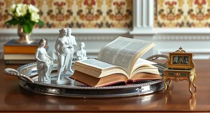 Сервировка стола в стиле неоклассицизм должна быть безупречной. Используйте фарфоровую посуду с золотой каймой, хрустальные бокалы, серебряные столовые приборы и льняные салфетки. Украсьте стол цветами, фруктами и конфетами. Не забудьте о красивом подносе для десертов и элегантном графине для напитков. Я помню, как на одном из дней рождений моей мамы, стол был сервирован настолько красиво, что гости не могли оторвать от него глаз.