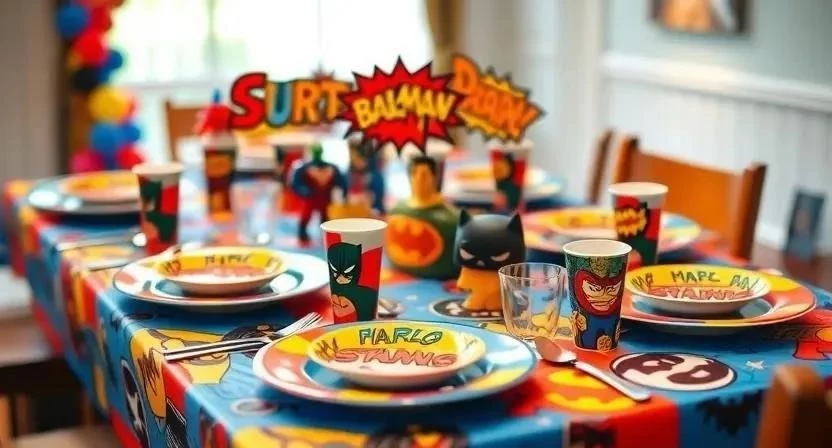 Тематическое меню – это еще один способ погрузить гостей в атмосферу супергеройского праздника. Приготовьте блюда и напитки, которые ассоциируются с любимыми персонажами. Например, «Супер-бутерброды», «Энергетические напитки», «Торт в стиле супергероев». Оформление стола также должно быть тематическим – используйте яркую посуду, скатерть с изображением комиксов.