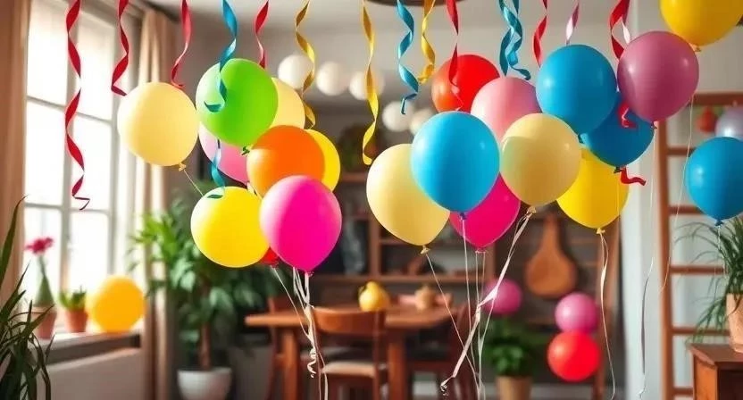 Ответ: Используйте воздушные шары, гирлянды, плакаты, свечи и цветы.