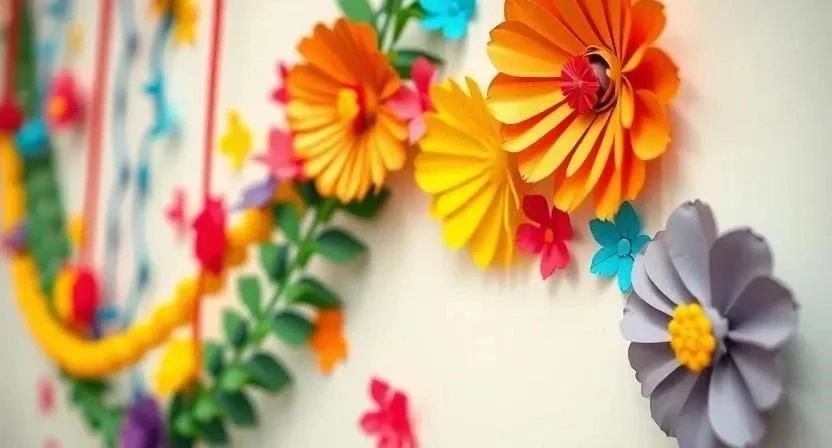 - Бумажные цветы, прикрепленные к стене.