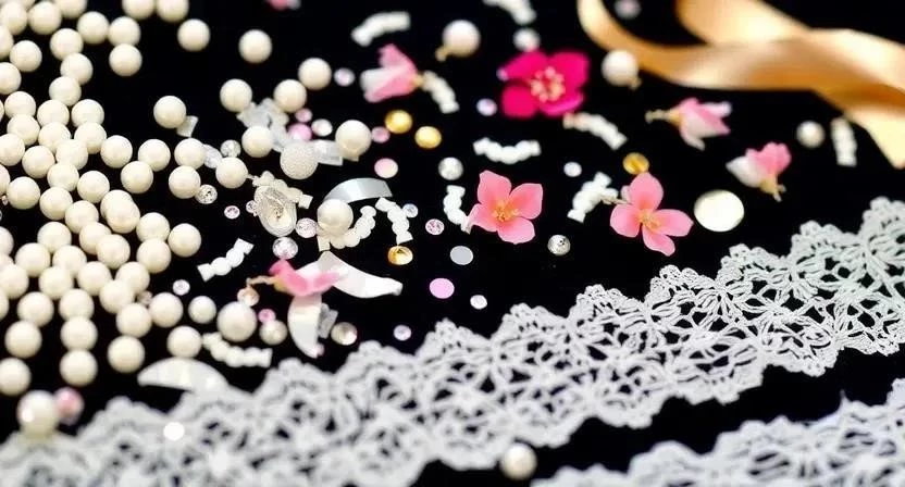 - Декоративные элементы (ленты, бусины, цветы, стразы, кружево)