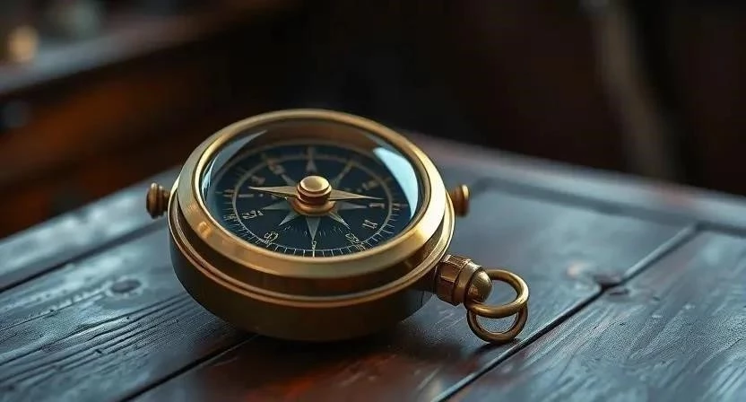3. Необычные предметы: морской телескоп, антикварный компас, карта звездного неба.