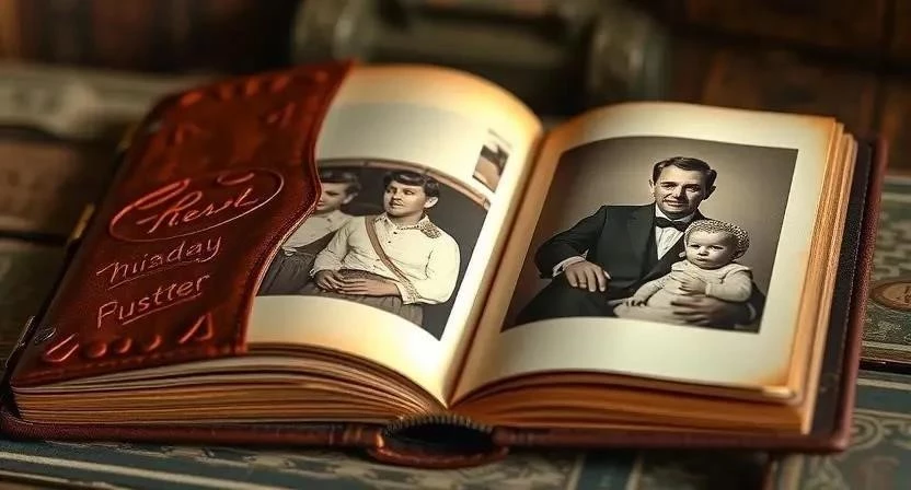 - Памятные подарки: Фотоальбом с семейными фотографиями, генеалогическое древо, именные вещи (халат, кружка, часы). Я сделал для отца фотоальбом с фотографиями его жизни, начиная с детства и заканчивая настоящим временем. Он был очень тронут этим подарком.