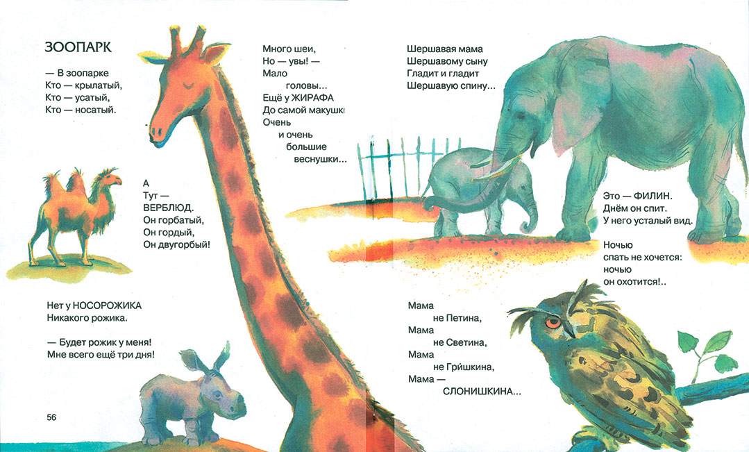 А ещё стихи Эммы Мошковской переполнены словами, рассказывающими о звуках и изображающими звуки. И вдруг из весёлого звукопада рождается тишина, когда можно посидеть и подумать. Ведь вопросы, которые звучат в стихах Мошковской, вызваны тем, что её герои — думают. Вот что самое главное.