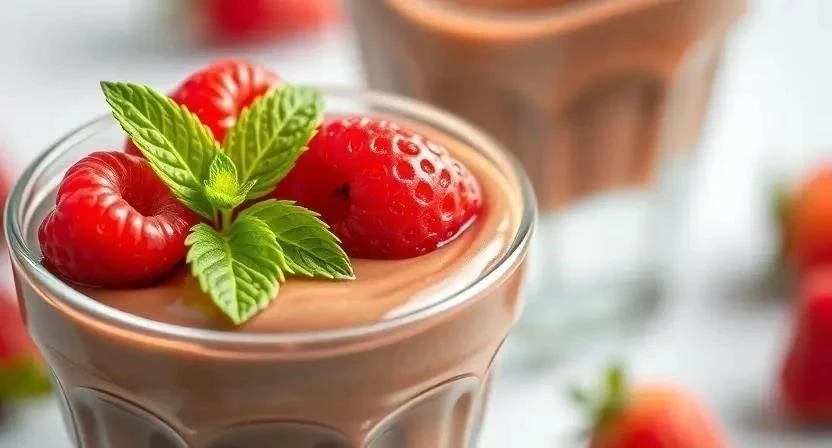 - Шоколадный мусс: Растопите шоколад, добавьте сливки и взбейте до пышной массы.
