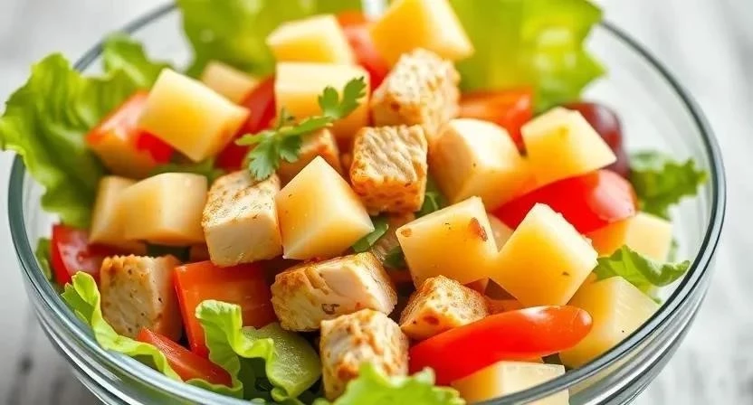 - Салат с курицей и ананасом: Отварную курицу нарежьте кубиками, добавьте консервированный ананас и заправьте майонезом.