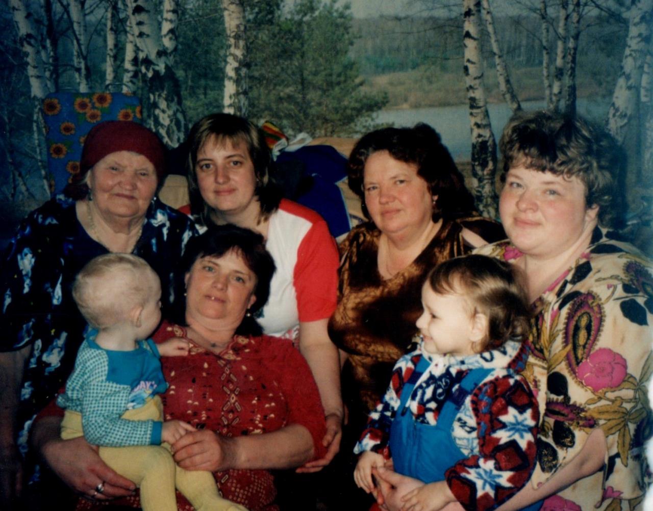 И в послевоенное время прабабушка работала непокладая рук. Работала в поле «от зари до зари», выполняя тяжёлый мужской труд, в должности штурвального на комбайне. Здесь она и познакомилась со своим будущим мужем Ивановым Дмитрием Ульяновичем. Прадедушка увёз её в своё родное село, где они сыграли свадьбу. И началась семейная жизнь. Молодые обзавелись хозяйством, здесь же родились дети. У бабы Лены было шесть детей, двое из них умерли в раннем детстве. Я до сих пор задаюсь вопросом, как же ей хватало сил на воспитание детей, на работу и ведение большого домашнего хозяйства. (На фото семья Ивановых: Дмитрий Ульянович и Елена Яковлевна, 1950 год; баба Лена и её дочери: Мария, Наталья и Галина, 1973 год).