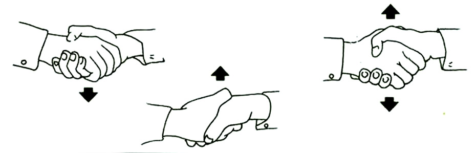 Каким же тогда является вертикальное рукопожатие? Ни доминирующим, ни подчиненным, а равным. С самого начала ваш собеседник хочет быть с вами на равных.