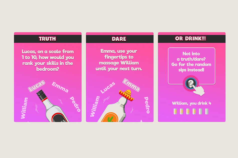 Сборник игры для вечеринок, где есть несколько категорий заданий. Среди них: «Кто наиболее вероятно», «Динь-динь» (такая версия «Я никогда не»), «Круг смерти» (фанты) и «Импровизация» (напоминает «Крокодила»), а еще – «Да или нет» («данетки»).
