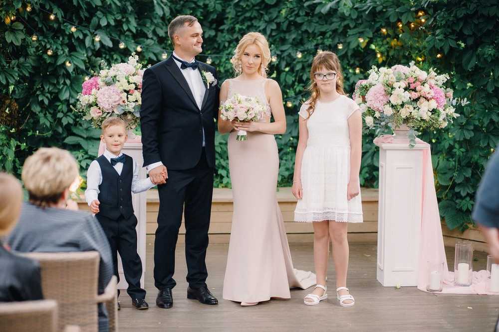 Этот сценарий актуален для тех, у кого не было свадебного дня. Проведите символическую регистрацию брака в окружении дорогих людей на свежем воздухе, обменяйтесь кольцами, пусть это увидят ваши родители, родственники и друзья. Подтвердите своё желание быть супругами. А колечки, кстати, могут вынести ваши дети. Пусть завершает церемонию свадебный танец, которого когда-то вы были лишены.