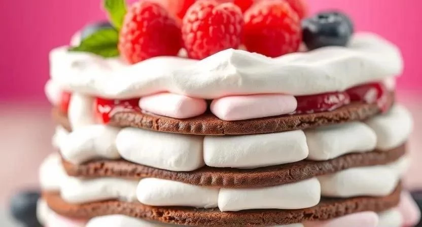 | Зефирный торт | 30 минут + 4 часа на охлаждение | Средне | 300 ккал |
