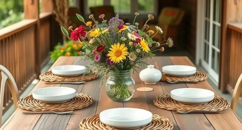 Декор стола для дачи: Натуральные материалы, цветы, летние мотивы