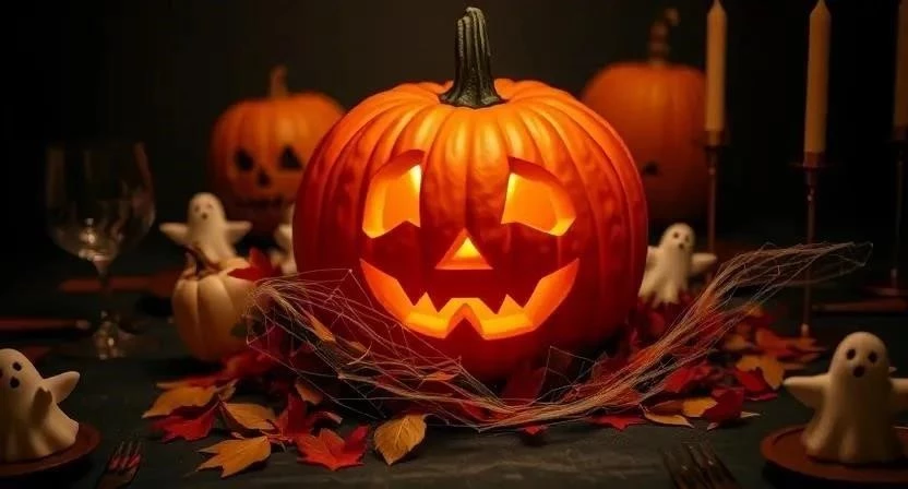 Декор стола на Хэллоуин: Тыквы, привидения, паутина, тематические украшения