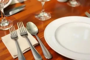 Ответ: Вилки слева, ножи справа, лезвием к тарелке, ложки – справа от ножей.