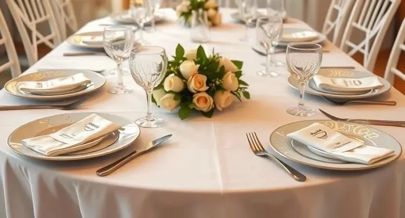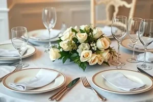 | Классический | Строгая симметрия, элегантность | Дорогая посуда, хрусталь, серебро | Официальные приемы, свадьбы |