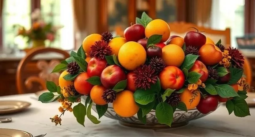 3. Как сделать центральную композицию? Используйте цветы, фрукты, свечи или оригинальные скульптуры.