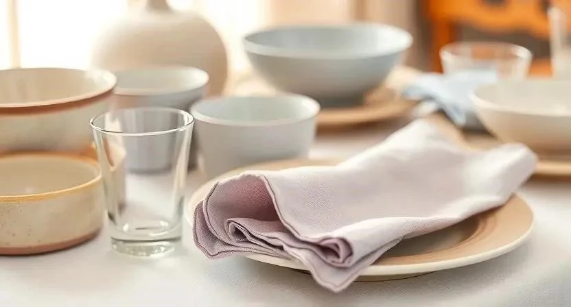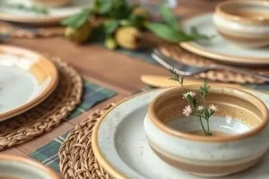 | Повседневная сервировка | Цветы в вазе, салфетки с узором | Светлые, натуральные | Простая и уютная |