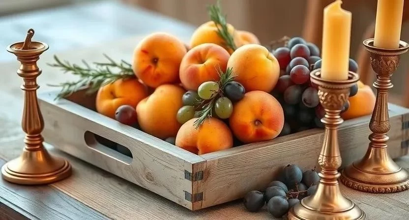Ответ: Можно использовать свежие цветы, фрукты, свечи, винтажные предметы и другие декоративные элементы.