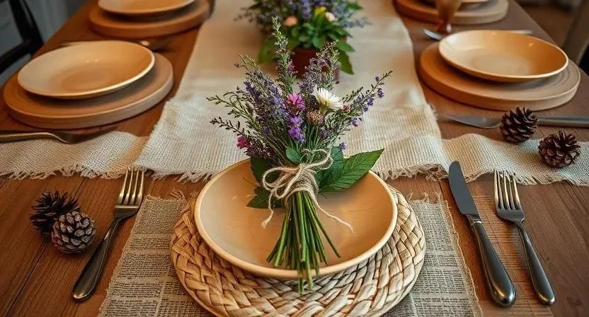 Украсьте салфетки и приборы веточками зелени. Это добавит изысканности и оригинальности сервировке. Можно использовать небольшие веточки розмарина или тимьяна.