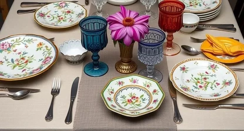 Какую посуду выбрать для эклектичной сервировки? Можно использовать посуду из разных сервизов, разных эпох и стилей. Важно, чтобы посуда была качественной и гармонично сочеталась друг с другом.