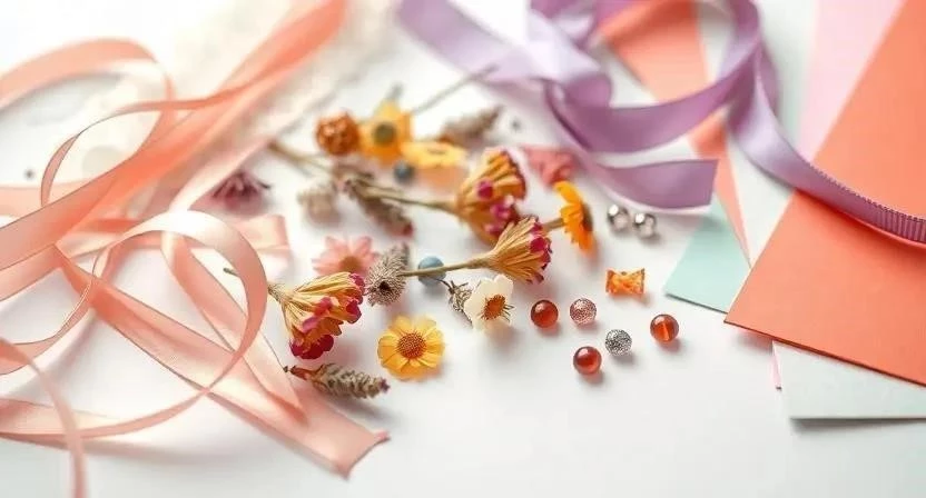 - Декор: Ленты, кружево, бусины, стразы, сушеные цветы, наклейки, штампы.